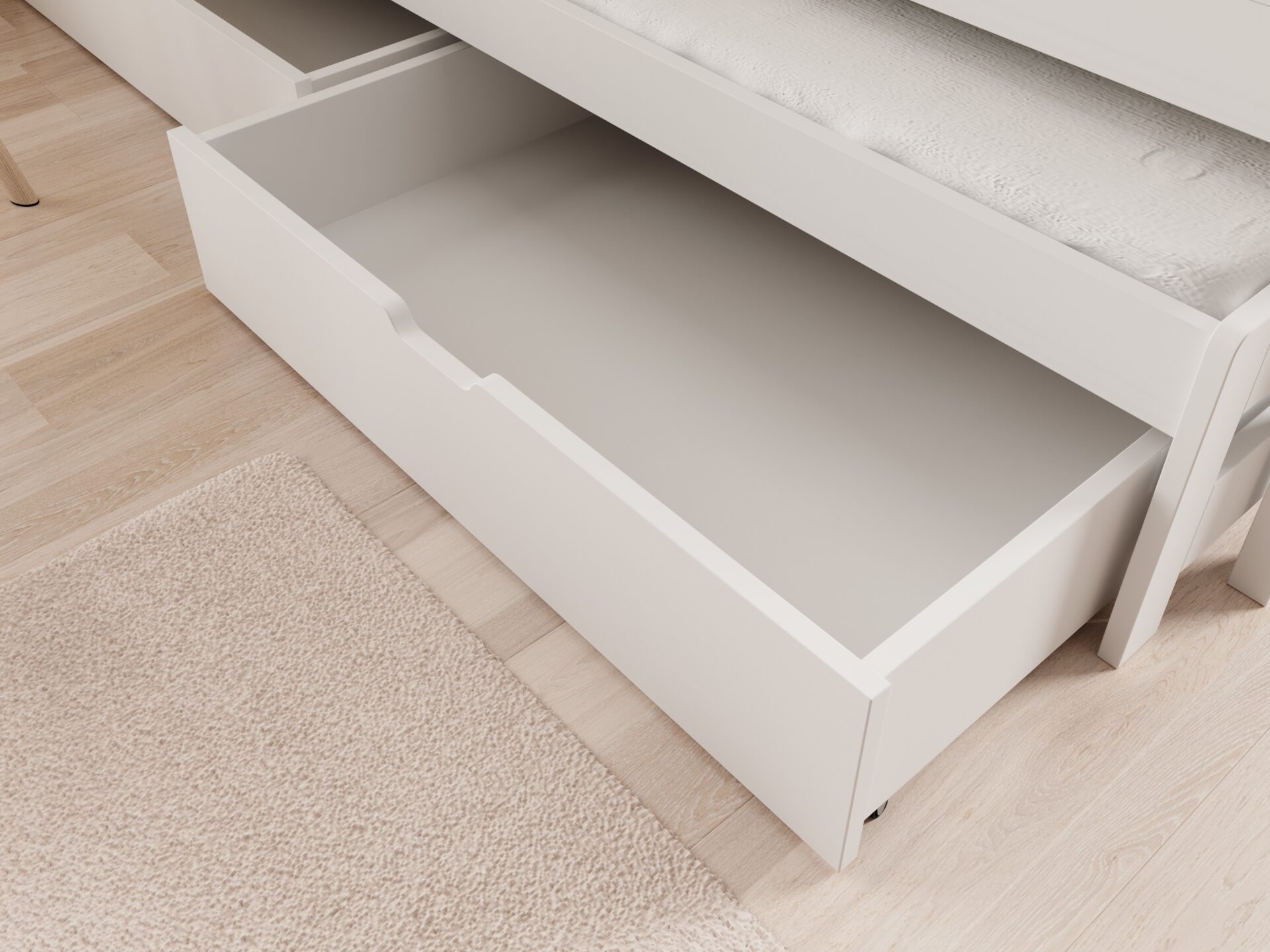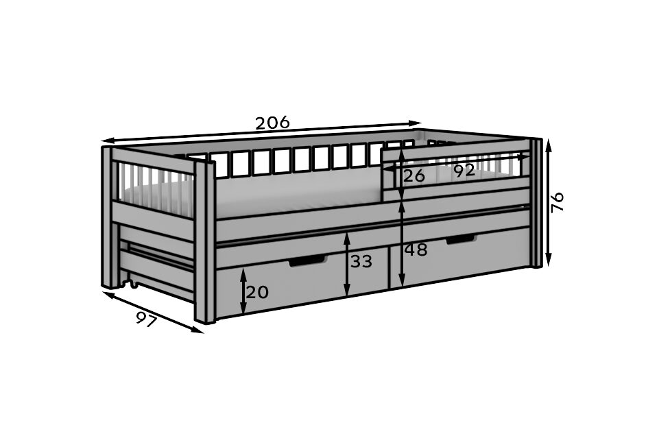 Vaikiška lova „Orio“ – puikus sprendimas broliams ir seserims arba vaikams, kuriems reikia daugiau erdvės. Dvigulė lova yra dviejų dydžių: 180 × 80 cm ir 200 × 90 cm, todėl ją galima pritaikyti skirtingiems poreikiams ir kambario dydžiams. Lova pagaminta iš patvarių medžiagų, yra dviejų patrauklių spalvų: baltos ir pušies, todėl ją lengva priderinti prie bet kokio interjero dizaino. Papildomas privalumas – du daiktadėžės skyriai po lova, kurie suteikia papildomos vietos patalynei, žaislams ir kitiems daiktams laikyti, taip palaikant tvarką vaiko kambaryje. Lova „Orio“ derina funkcionalumą ir estetiką, siūlydama patogų miegą ir praktiškus kasdienius sprendimus.