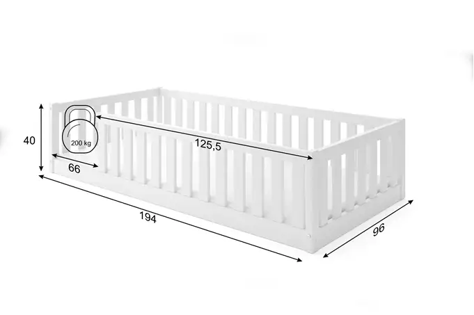 Bella Sima viengulė vaikiška lova 90×190 su čiužiniu, balta