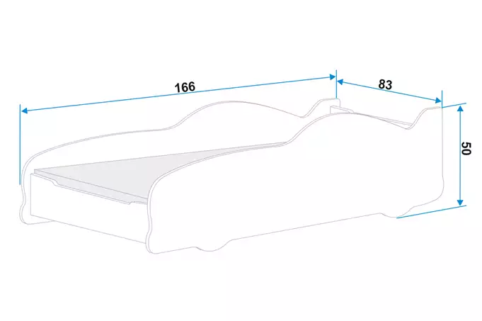 Spalvinga spauda. MDF plokštė – dažyta vandens pagrindo laku. Čiužinys – be čiužinio. Maksimali apkrova – 100 kg. Rėmas – HDF plokštė.