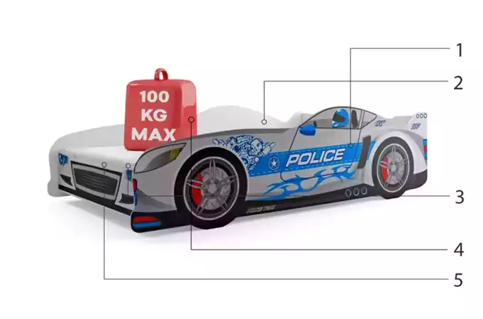 Spalvinga spauda. MDF plokštė – dažyta vandens pagrindo laku. Čiužinys – 160x80x7 dydžio, su nuimamu užvalkalu, oro kondicionavimo pluoštu ir poliuretano putomis. Užvalkalas – dygsniuotas hipoalerginis audinys, pagamintas iš poliesterio, su užtrauktuku. Maksimali apkrova – 100 kg. Rėmas – HDF plokštė.