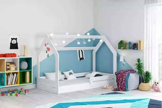 Viengulė vaikiška lova DOMEK 1 80×160 su čiužiniu, balta