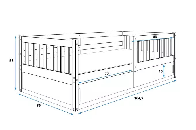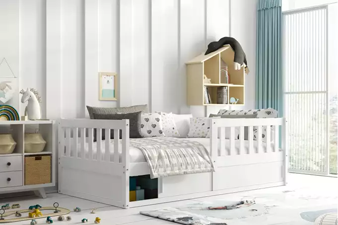 SMART viengulė vaikiška lova 80×160 su daiktadėže, balta