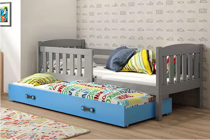 Būkite pirmas aprašęs “KUBUŚ vaikiška išskleidžiama lova 80×160 su čiužiniu ir stalčiumi, grafito/mėlyna”