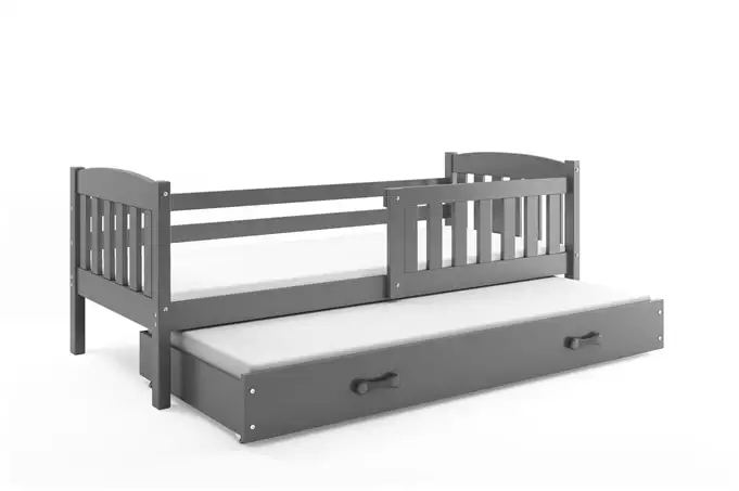 Lovos rėmas – pagamintas iš pušies medienos, dažytas vandens pagrindo laku. Surinkimo priedai – greitas ir paprastas surinkimas. Čiužiniai – 7 cm storio (2 vnt.), su nuimamu užvalkalu, oro kondicionavimo pluoštu ir poliuretano putomis. Užvalkalas – dygsniuotas hipoalerginis poliesterio audinys, su užtrauktuku. Rėmas – esame vienintelė įmonė, siūlanti rėmą, pagamintą iš spyruoklinių beržo medienos lentelių, tvirtinamą PVC rankena ant metalinės juostelės, naudojant spragtelėjimo sistemą (greitas surinkimas). Stalčius – pagamintas iš medžio drožlių plokštės, su papildoma miegojimo funkcija. Stalčiaus rankena – pagaminta iš PVC. Stalčiaus ratukai. Apvalinimas – R2 spindulys. Keliamoji galia – 100 kg kiekvienam lygiui. Sertifikuota lova – kokybė ir saugumas pagal TUV standartus.