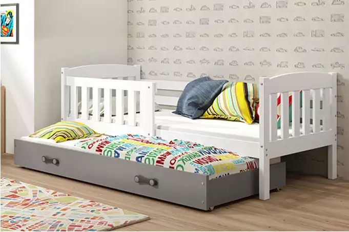 KUBUŚ vaikiška išskleidžiama lova 80×160 su stalčiumi, balta/grafito spalvos