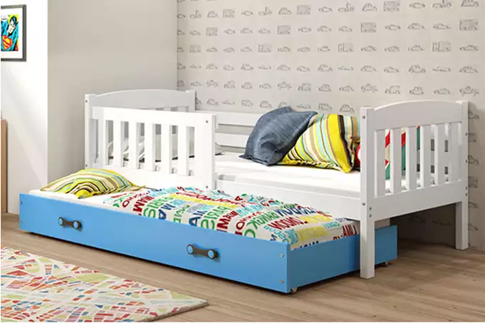 KUBUŚ išskleidžiama lova vaikams 80×160 su stalčiumi, balta/mėlyna