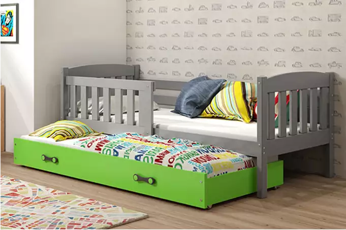 KUBUŚ vaikiška išskleidžiama lova 80×160 su stalčiumi, grafito/žalia
