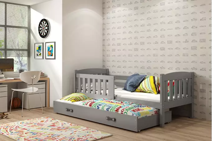 KUBUŚ vaikiška išskleidžiama lova 80×160 su stalčiumi, grafito spalvos