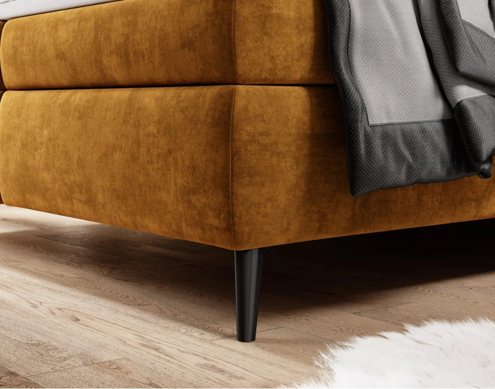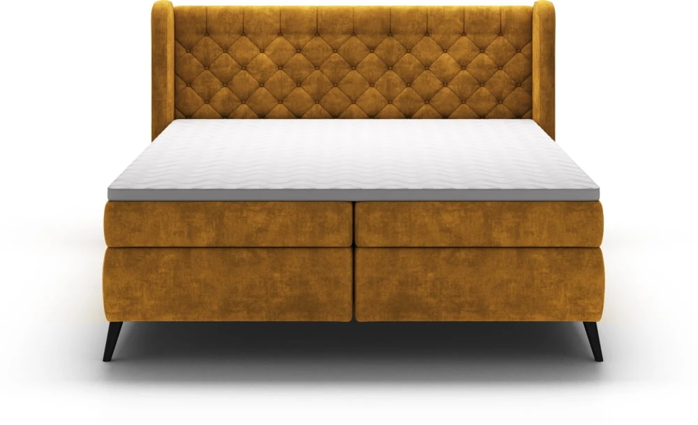 „Madison“ kontinentinė lova su aukštu galvūgaliu, dekoruotu dygsniais ir siūlėmis. Į kainą įskaičiuota: rėmas su „Bonnell“ spyruokliniu čiužiniu ir kišeninių spyruoklių čiužiniu. Viršutinį sluoksnį reikia įsigyti atskirai. Šis modelis neturi patalynės skyriaus. Lova yra 140, 160, 180/200 cm dydžių.
