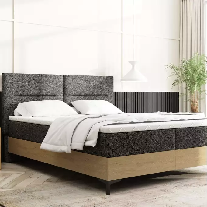 Techninės specifikacijos: Lovos rėmas pagamintas iš natūralaus ąžuolo medienos, garsėjančios savo patvarumu ir rafinuota išvaizda. Subtilus raštas ir šiltas ąžuolo atspalvis suteikia baldui nesenstantį eleganciją ir unikalų charakterį. Galvūgalis aptrauktas minkštu apmušalu. Du čiužiniai pagaminti iš didelio elastingumo putų ir aptraukti audiniu, kuris žavi modernia išvaizda ir universaliu stiliumi. Dėl prislopintos spalvos jis puikiai dera tiek šviesiame, tiek tamsiame interjere. Šis estetikos ir patvarumo derinys suteiks jaukumo ir klasės bet kuriai erdvei. Du daiktadėžės (atskirtos pertvaromis) su spyruokliniais keltuvais. Surinkimo priedai – greitas ir paprastas surinkimas. Metalinės lovos kojelės. Maksimali apkrova: 400 kg. Miegamasis plotas: 140 x 200 cm.