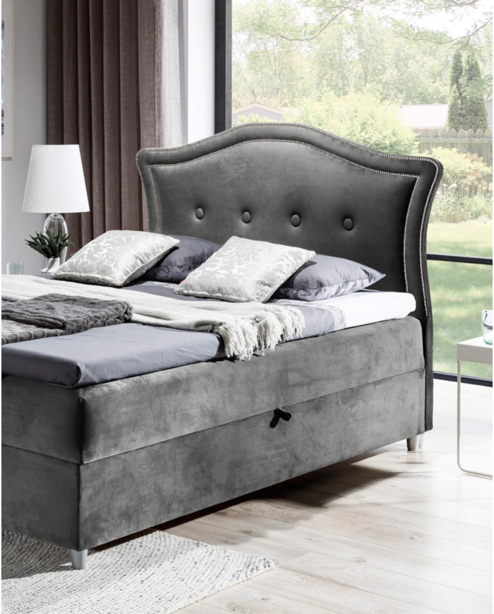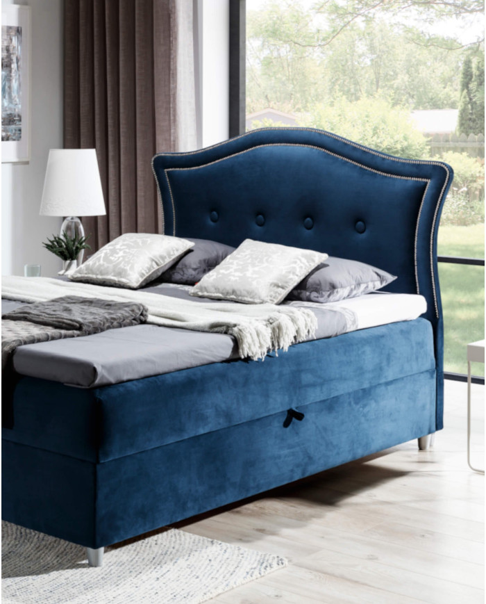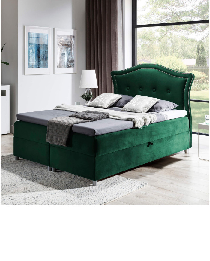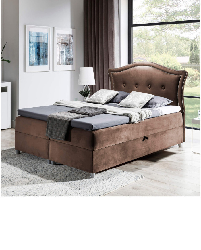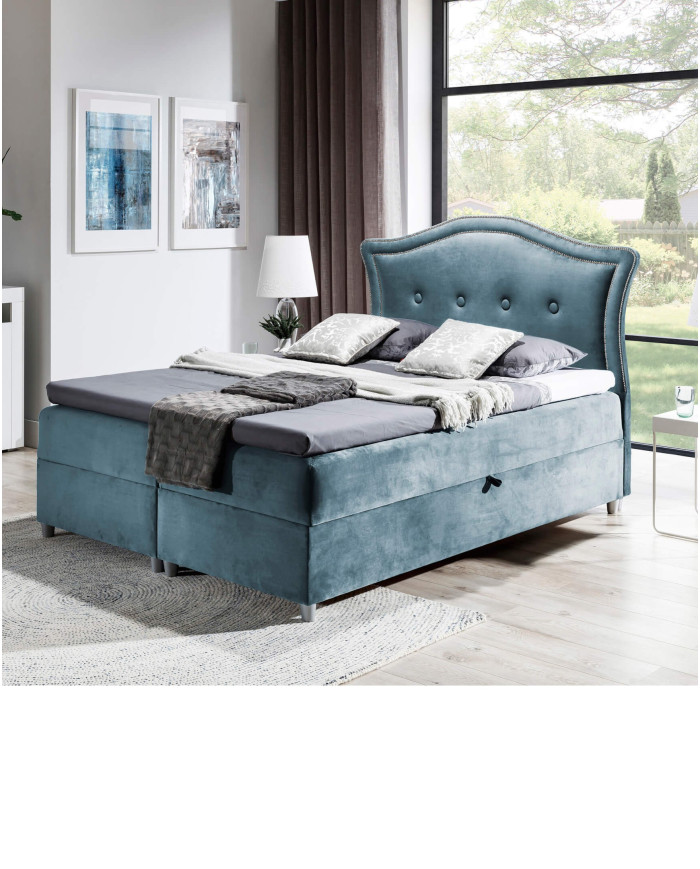 Didelė ir patogi „Bedran“ kontinentinė lova, kurios miegamojo plotas yra 180 × 200 cm, aprūpinta septynių zonų kišeninių spyruoklių čiužiniu ir 5 cm storio putplasčio čiužiniu. Klasikinį charakterį pabrėžia stilizuotas, minkštas galvūgalis, papuoštas dviem metalinių smeigių eilėmis ir prisiūtas apmušalų sagomis. Apatinėje lovos dalyje yra du patalynės skyriai, kurie atsidaro iš abiejų pusių ir yra paremti automatiniais spyruokliniais mechanizmais. Visas komplektas stovi ant atlasinių kojelių, suteikiančių elegancijos. Lova tiekiama su minimaliu surinkimu ir gali būti siūloma su plačiu apmušalų audinių asortimentu, kurį siūlo „Product Creator“.