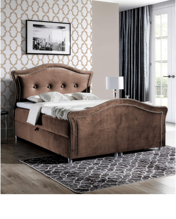 Jei ieškote klasikinės ir kokybiškos kontinentinės lovos, „Bedran Lux“ lova yra puikus pasirinkimas! Ji pasižymi gražiu, stilizuotu galvūgaliu, papuoštu metalinėmis kniedėmis, ir minkštu, sagomis dygsniuotu galvūgaliu, kuris taip pat gali būti puiki atrama skaitant vakare. Ji taip pat turi žemą, minkštą galvūgalį priešingoje lovos pusėje. Lova aprūpinta patogiu kišeninių spyruoklių čiužiniu, užtikrinančiu saugų miegą. Viršutinėje lovos dalyje yra 5 cm storio putplasčio čiužinys. Apatinėje lovos dalyje yra du patalynės skyriai, kiekvienas atidaromas spyruokliniais mechanizmais. Komplektą galima užsisakyti iš plataus audinių rinkinio.