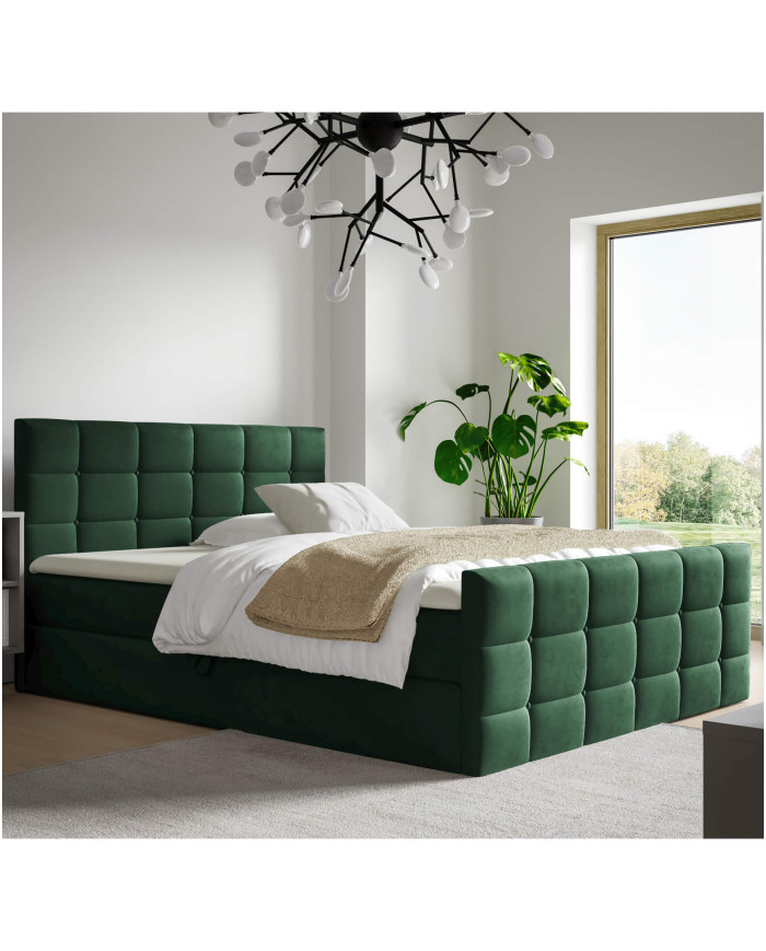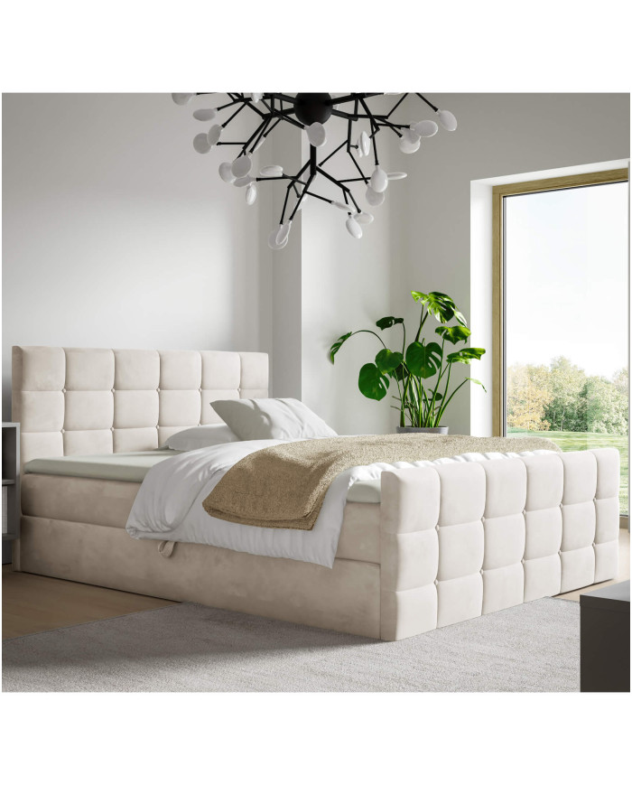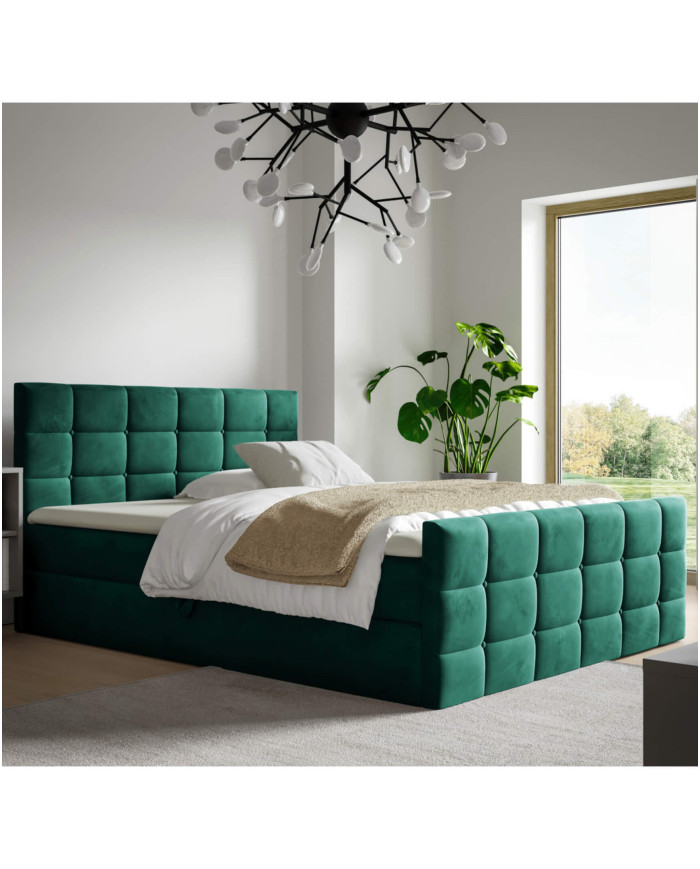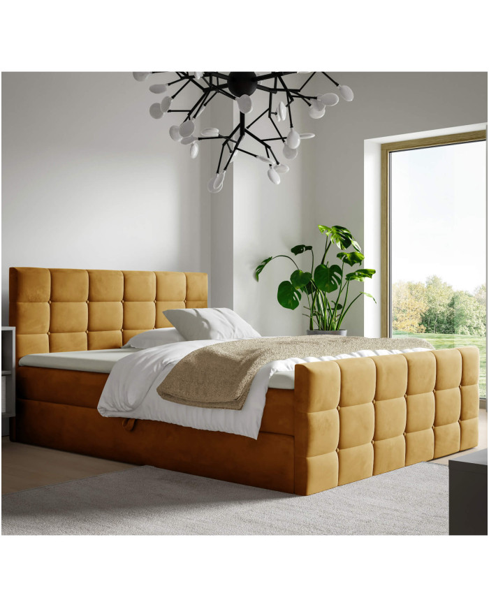 Berlyno kontinentinė lova 200×200, apmušta, čiužiniai, čiužinys su užtiesalu, konteineris