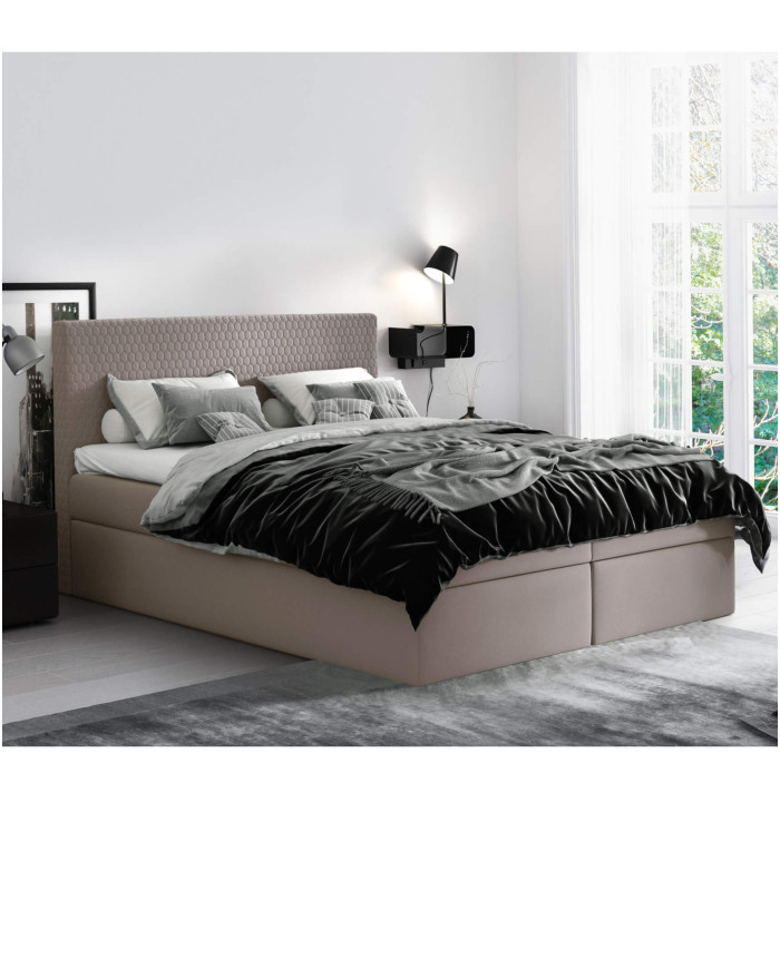 „Cosmo“ 180 × 200 cm minkšta lova – puikus pasirinkimas ieškantiems patogios miegamojo lovos su didele miegojimo zona. Joje yra du šonuose atidaromi patalynės skyriai, kuriuose patogiai susidėti daiktus. Ši didelė minkšta lova puikiai tinka moderniam miegamajam.