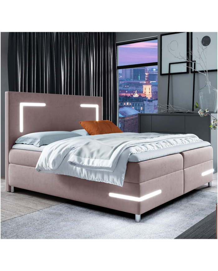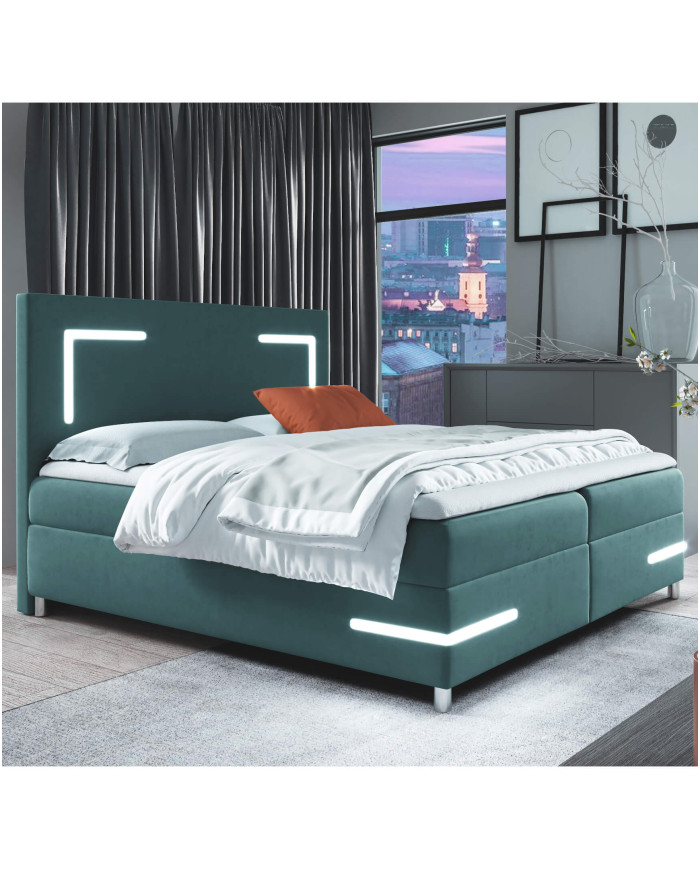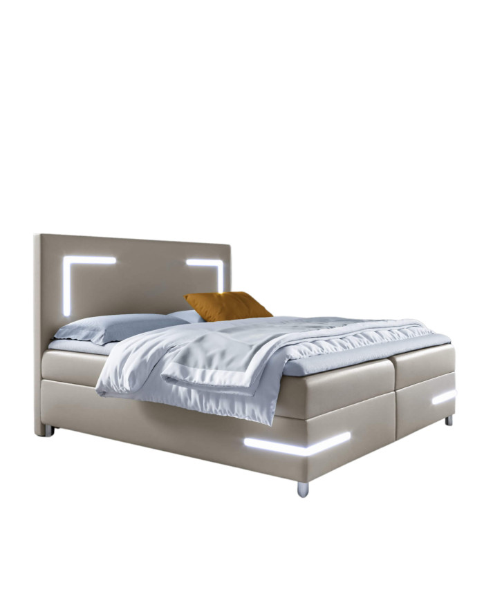 Delos LED kontinentinė lova 160×200, su apšvietimu, apmušta, čiužiniais, čiužinio užtiesalu, konteineriu