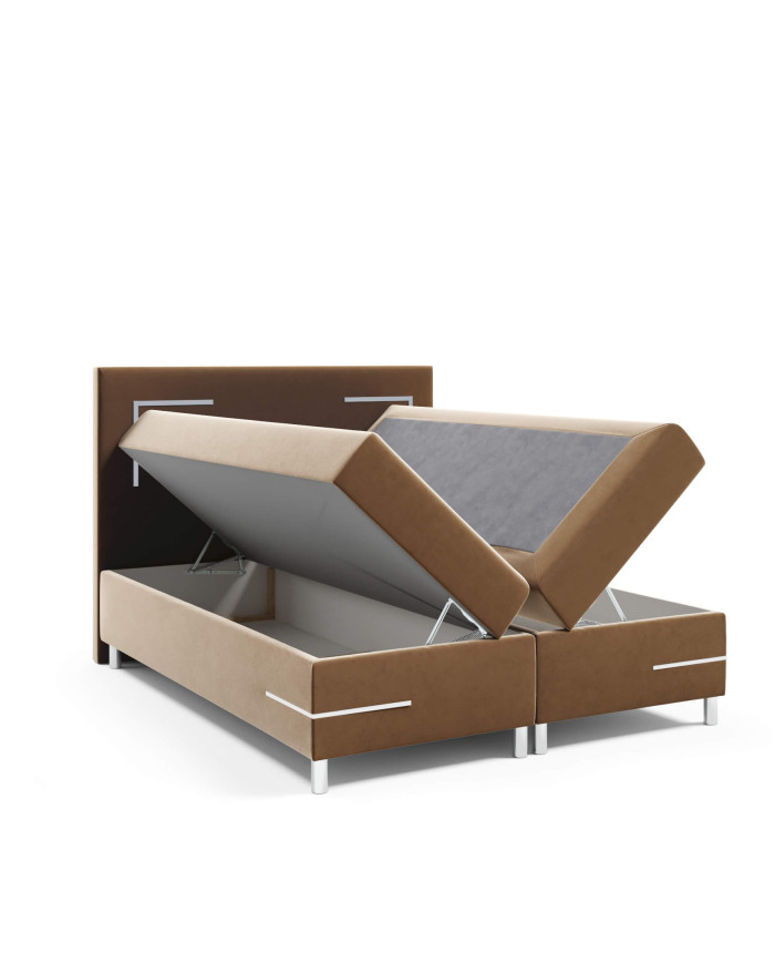 Unikali 160×200 Delos LED kontinentinė lova – puikus sprendimas tiems, kurie vertina komfortą ir modernų dizainą. 160×200 cm dydžio lova puikiai tinka erdviems miegamiesiems, nes suteikia komforto ir erdvės miegui. Šis modelis aprūpintas dviem šoniniais patalynės skyriais, „Bonnell“ spyruokliniu čiužiniu, T-25 putų antčiužiniu ir standartiniu LED apšvietimu, kurį galite valdyti nuotolinio valdymo pultu.