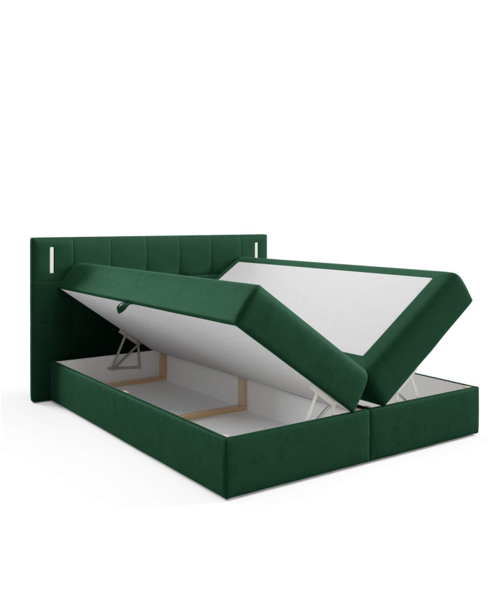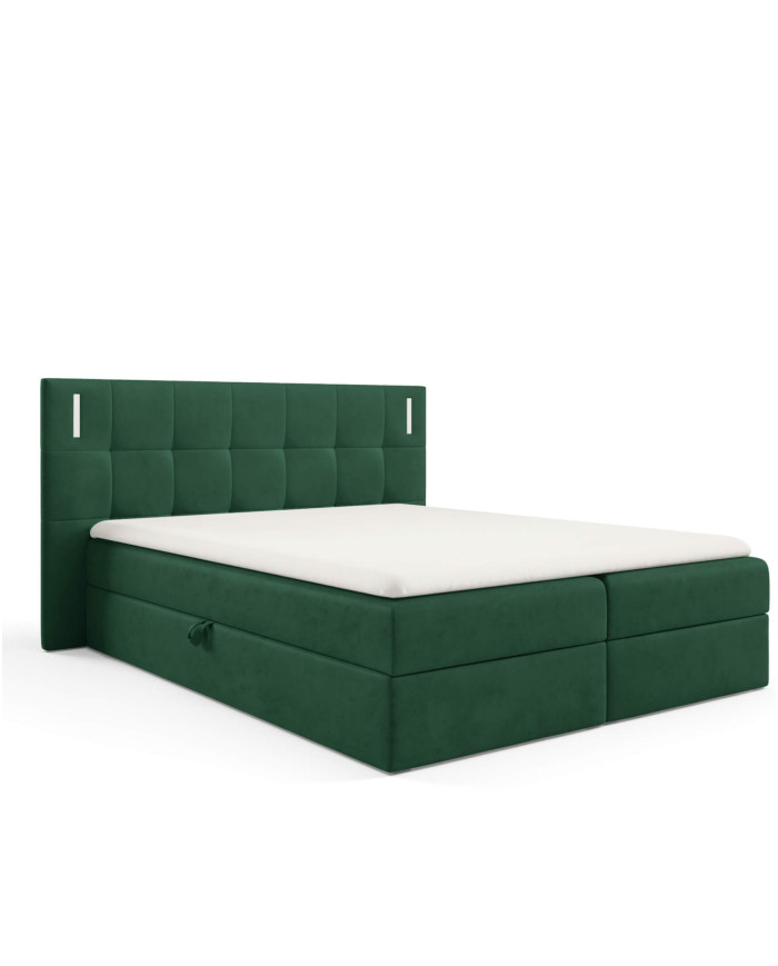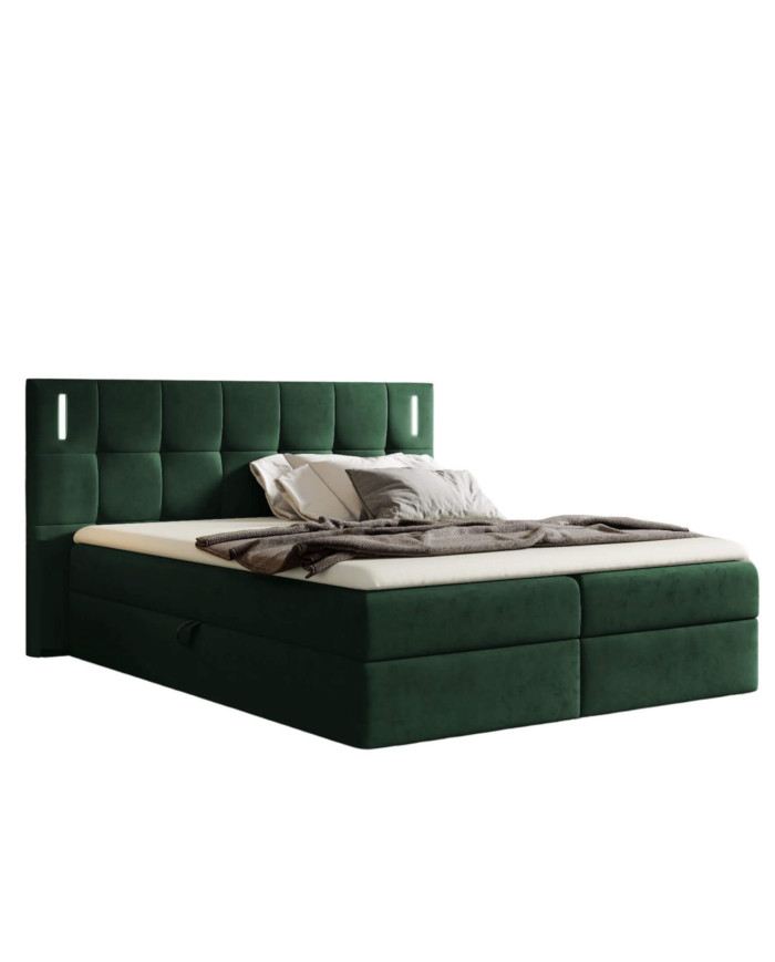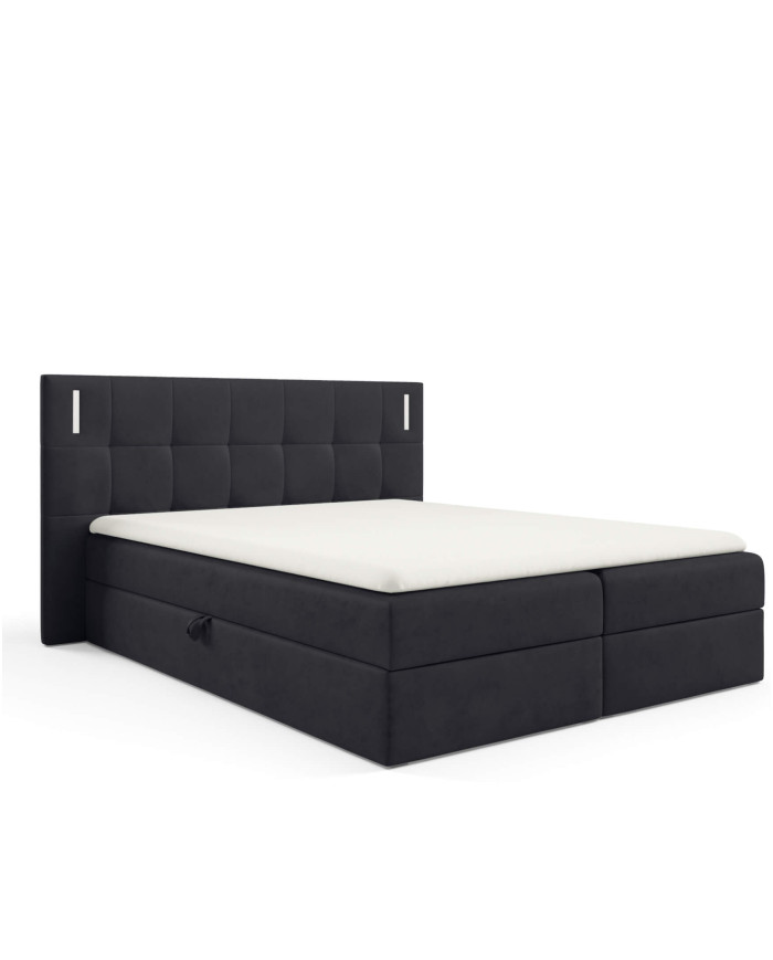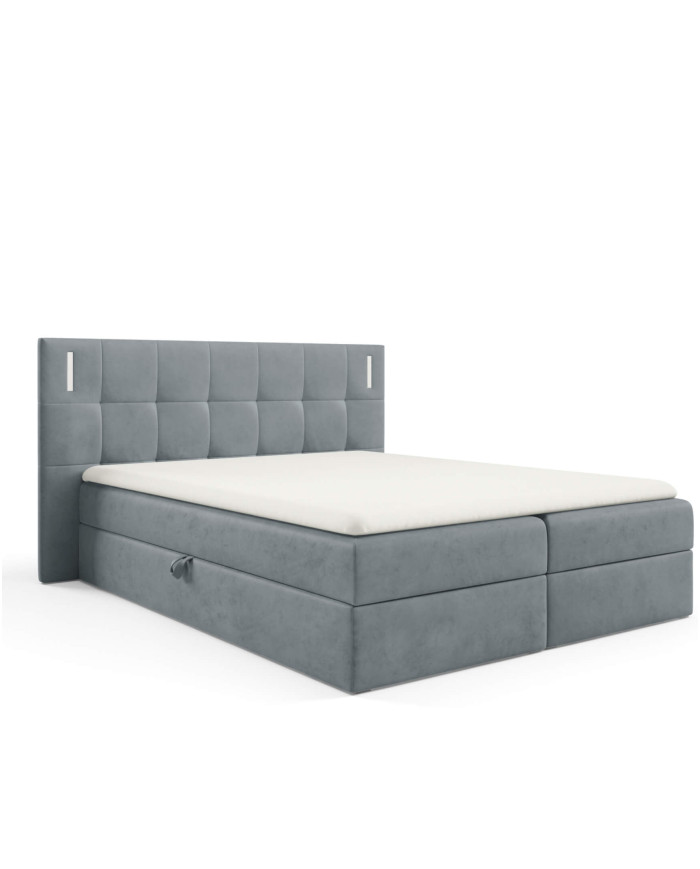 Denver kontinentinė lova 180×200, su apšvietimu, apmušta, čiužiniai, čiužinys, čiužinuko užtiesalas, konteineris