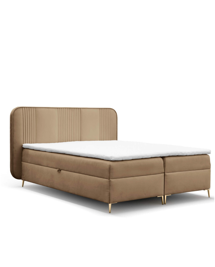 „Fandy 120“ kontinentinė lova – tai išskirtinis baldas, skirtas ieškantiems žavesio ir komforto viename. Ji pasižymi gražiai išlenktu galvūgaliu, papuoštu subtiliomis vertikaliomis siūlėmis. Dekoratyvinis apvadas kraštuose užbaigia išvaizdą, suteikdamas klasės ir elegancijos.