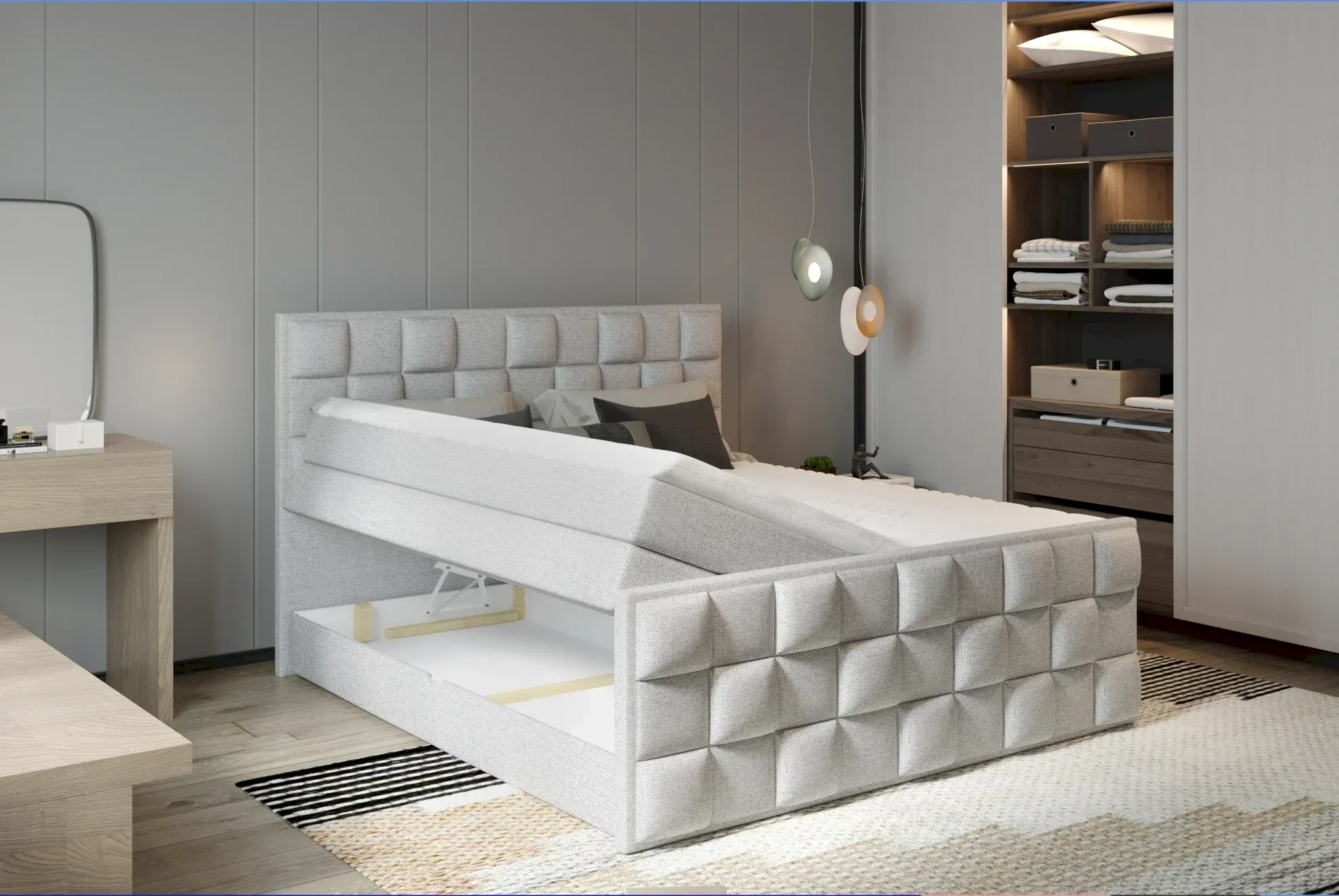 Kontinentinė lova su užtiesalu 180×200 Gr1