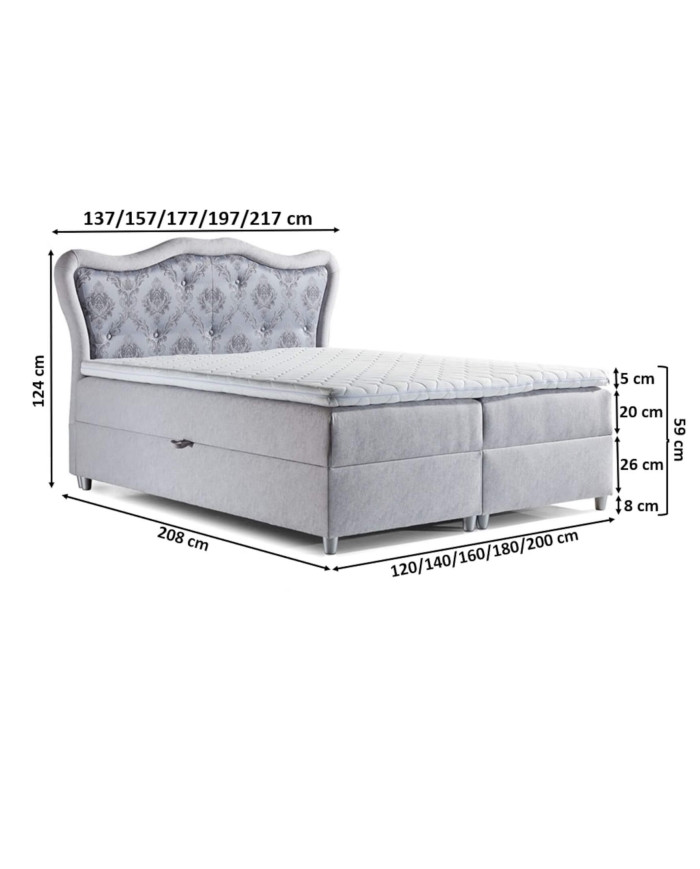 Gusto kontinentinė lova 140×200, apmušta, čiužinys, čiužinuko užtiesalas, konteineris