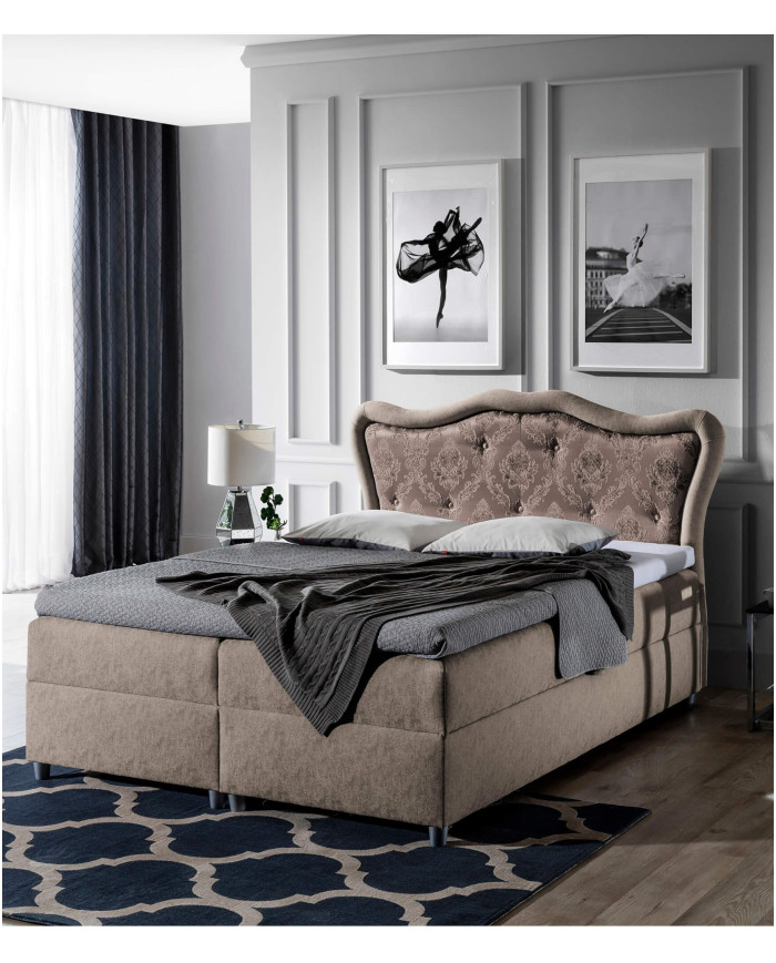 Klasikinė „Gusto“ kontinentinė lova, kurios miegamojo plotas yra 200 × 200 cm, yra išties erdvi vieta poilsiui tiek naktį, tiek dieną. Stilizuotas galvūgalis papuoštas didelėmis apmušalų sagomis, pabrėžiančiomis baldo charakterį. Ši apmušta lova turi du erdvius patalynės skyrius, kuriuose taip pat galima susidėti daiktus, anksčiau laikytus spintose ir komodose. Prieigą prie skyrių palengvina automatiniai spyruokliniai mechanizmai, padedantys juos atidaryti. Septynių zonų kišeninių spyruoklių čiužinys ir 5 cm storio putplasčio čiužinys užtikrina tinkamą miego komfortą. Komplektą galima įsigyti su įvairiais apmušalų audiniais, o pavyzdžių galite rasti „Product Creator“ svetainėje.