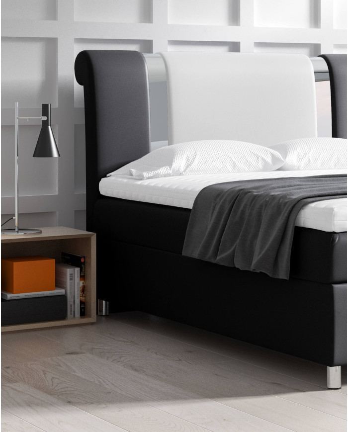 Minkšta „Mars“ kontinentinė lova pasižymi išskirtinio kontūro galvūgaliu su nikeliuotu dekoratyviniu elementu. Šis dizainerio sukurtas galvūgalis gali būti pagamintas iš dviejų audinių spalvų derinio, taip sukuriant visiškai unikalią išvaizdą. Lova apačioje turi du patalynės skyrius, kurie suteikia daug funkcionalumo. Šoninį atidarymą palengvina automatiniai spyruokliniai mechanizmai, kurie pakelia padalintą kišeninių spyruoklių čiužinį. Lovos viršuje yra maždaug 4 cm storio putplasčio viršutinis sluoksnis. Lova pagaminta pagal užsakymą pagal audinio pavyzdį, kurį galite įsigyti mūsų parduotuvėje.