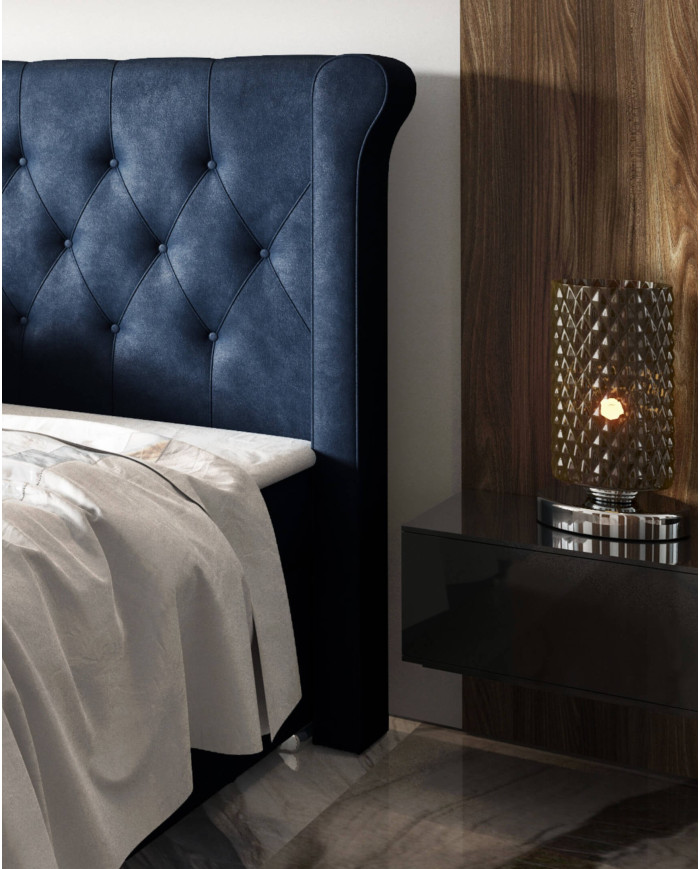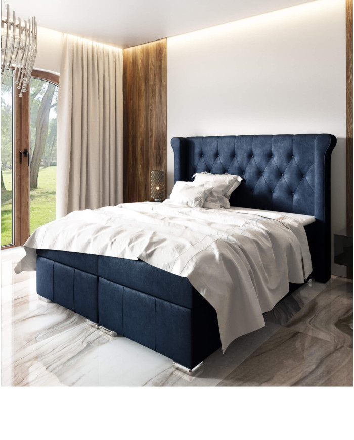 Glamūringo stiliaus apmušta “Massimo” kontinentinė lova traukia dėmesį dygsniuotu galvūgaliu ir dekoratyvinėmis chromuotomis kojelėmis. Ypač įdomus lovos bruožas – galvūgalio šonai, „sparnų kolonų“ formos, kurie iš abiejų pusių supa galvūgalį. Pats galvūgalis yra siuvinėtas išskirtiniu geometriniu rombo raštu, kurį paryškina dygsniuotos dekoratyvinės sagos. Jis atitrauktas nuo lovos šonų. Minkštas, patogus, apmuštas galvūgalis yra ne tik dizaino elementas; jis taip pat gali būti naudojamas kaip praktiškas atlošas skaitant knygą ar žiūrint vakaro filmą. Lovoje yra du gilūs patalynės skyriai, kuriuose taip pat galima laikyti papildomą antklodę ar užtiesalą. Jų šoninį atidarymą palengvina automatiniai spyruokliniai mechanizmai, kurie pakelia į dvi dalis padalintą kišeninių spyruoklių čiužinį. Ant miegamojo paviršiaus uždedamas 4 cm storio putplasčio užtiesalas. Baldai gaminami pagal individualius užsakymus, naudojant mūsų parduotuvėje esantį audinio pavyzdį.
