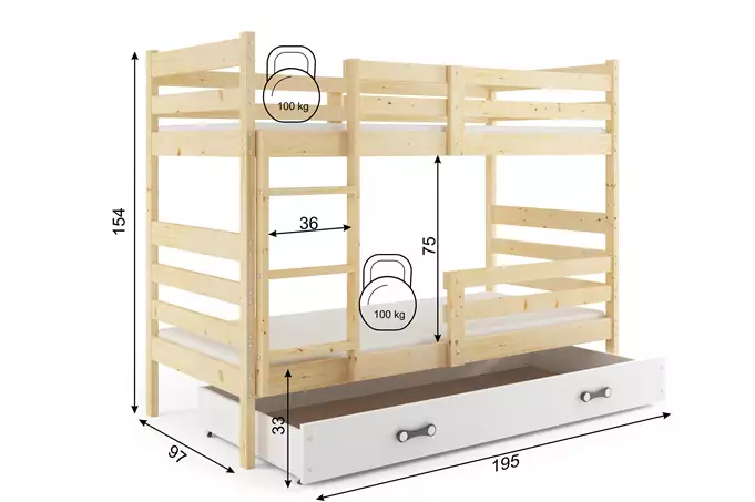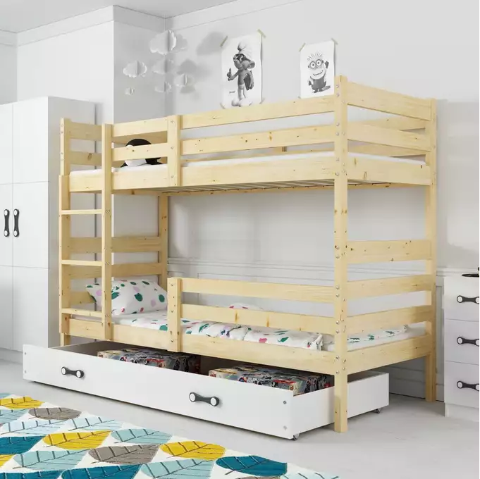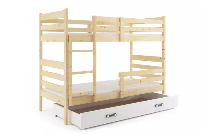 ERYK 90X190 jaunimo dviaukštė lova su stalčiumi, natūrali mediena