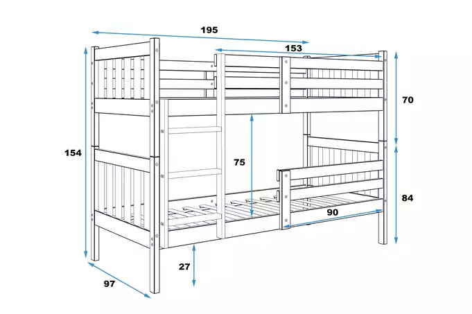 Būkite pirmas aprašęs “KACPER jaunimo dviaukštė lova 90×190 su čiužiniu, pušis”