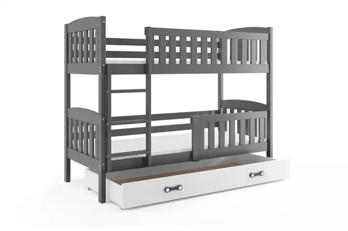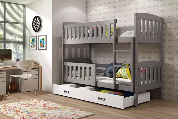 KUBUŚ jaunimo dviaukštė lova 90×190 su stalčiumi, grafito/balta