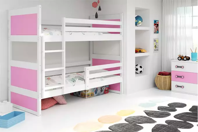 RICO jaunimo dviaukštė lova 90×190, balta/rožinė