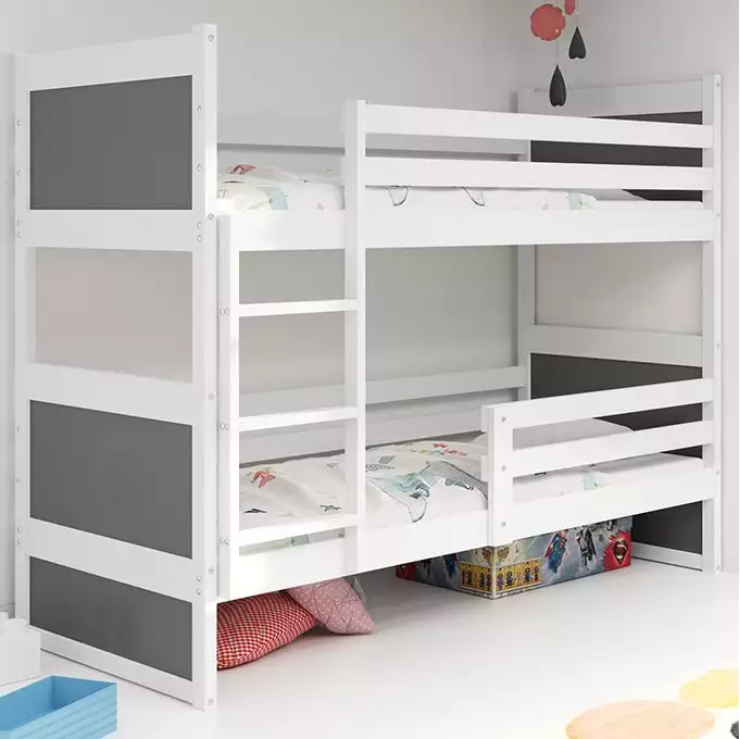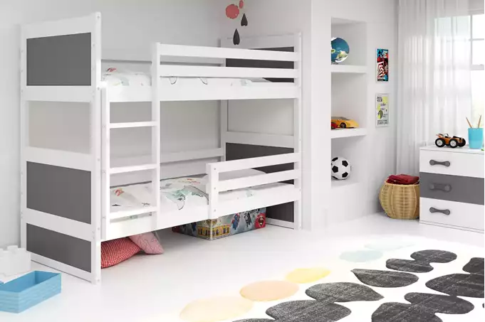 Būkite pirmas aprašęs “RICO jaunimo dviaukštė lova 90×200, balta/grafito spalvos”