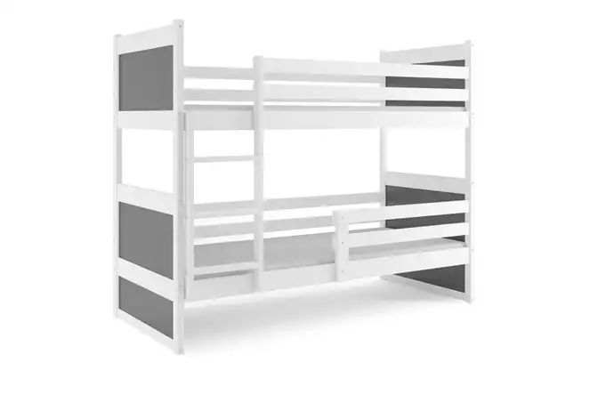 RICO jaunimo dviaukštė lova 90×200 su čiužiniu, balta/grafito spalvos