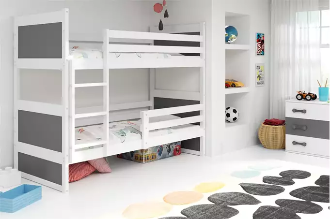 Būkite pirmas aprašęs “RICO jaunimo dviaukštė lova 90×200 su čiužiniu, balta/grafito spalvos”
