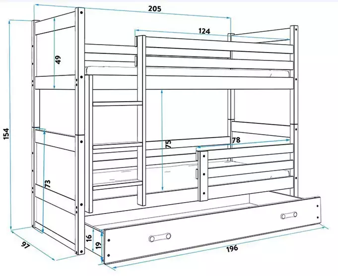 Būkite pirmas aprašęs “RICO 90×200 jaunimo dviaukštė lova su čiužiniu ir stalčiumi, balta/grafito spalvos”