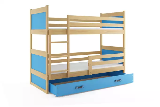 Lovos rėmas – pagamintas iš pušies medienos, nedažytas. Surinkimo priedai – greitas ir paprastas surinkimas. Rėmas – esame vieninteliai, siūlantys rėmą iš spyruoklinių lentelių, pagamintą iš beržo medienos, tvirtinamą PVC rankena ant metalinės juostelės, su spragtelėjimo sistema (greitas surinkimas). MDF plokštė – dažyta vandens pagrindo laku. Čiužiniai – 7 cm storio (2 vnt.), su nuimamu užvalkalu, iš oro kondicionavimo pluošto ir poliuretano putų. Užvalkalas – dygsniuotas hipoalerginis audinys, pagamintas iš poliesterio, su užtrauktuku. Stalčius – pagamintas iš medžio drožlių plokštės. HDF plokštė. Stalčiaus rankena – pagaminta iš PVC. Stalčiaus ratukai. Apvalinimas – R2 spindulys. Maksimali apkrova – 100 kg vienam lygiui. Sertifikuota lova – kokybė ir saugumas pagal TUV standartus.