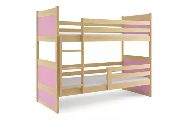 RICO jaunimo dviaukštė lova 90×200 su čiužiniu, pušis/rožinė