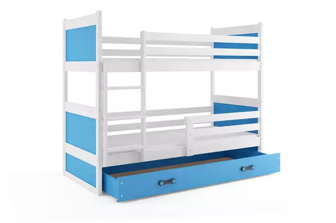 RICO jaunimo dviaukštė lova 90×200 su stalčiumi, balta/mėlyna