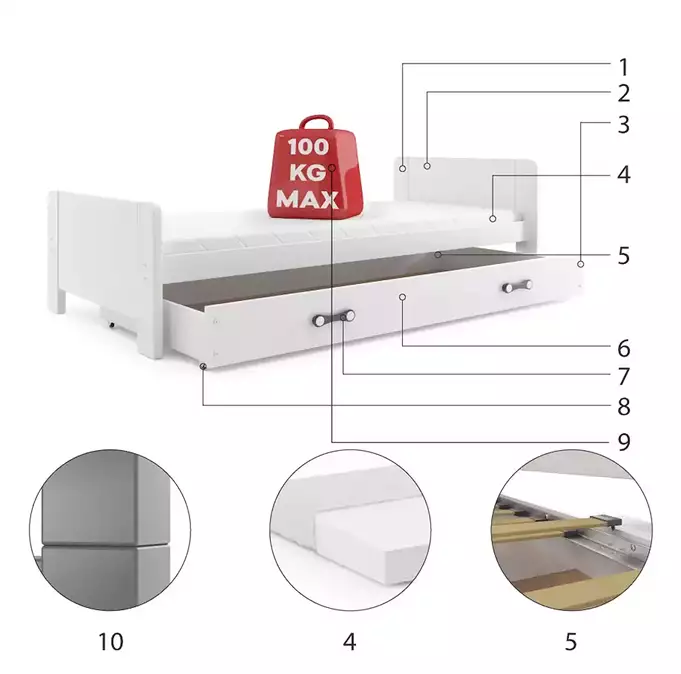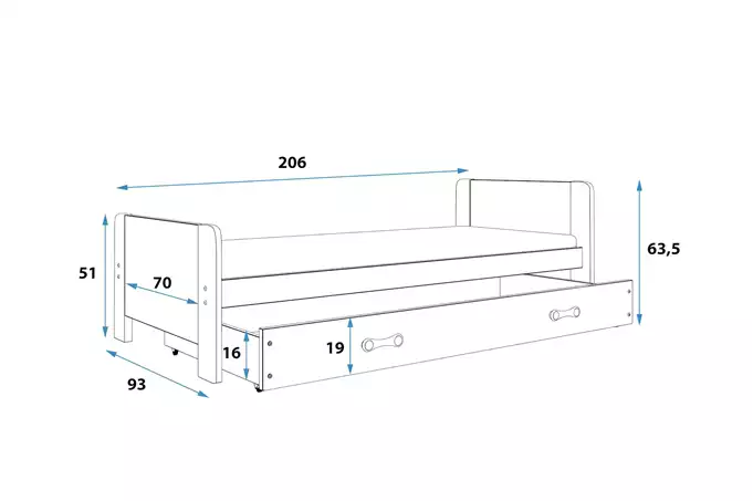 Lovos rėmas – pagamintas iš pušies medienos, dažytas vandens pagrindo laku.