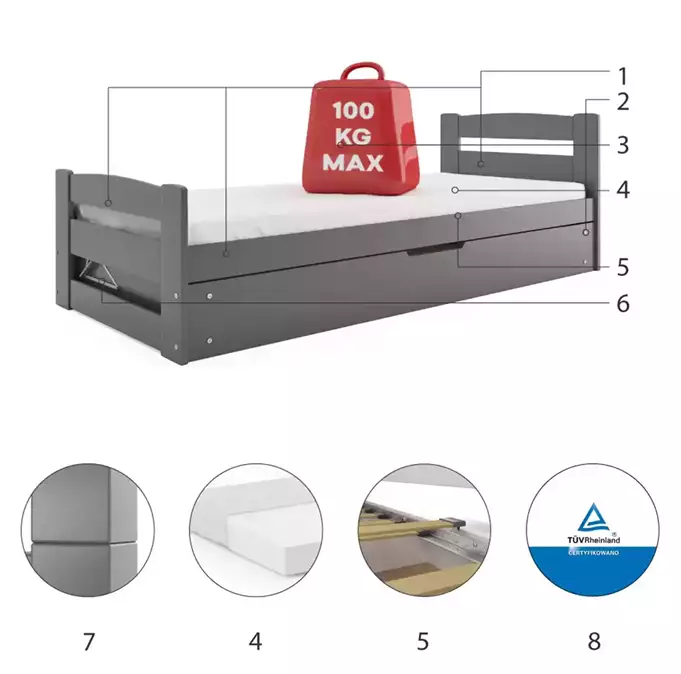 Būkite pirmas aprašęs “ERNI 90X200 viengulė jaunimo lova su daiktadėže, grafito spalvos”