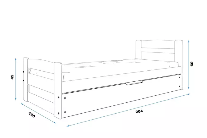 ERNI 90X200 viengulė jaunimo lova su daiktadėže, grafito spalvos