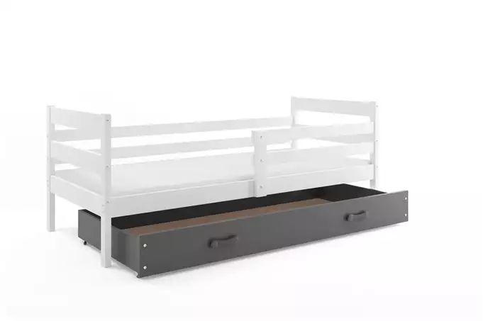 ERYK 90X200 jaunimo viengulė lova su čiužiniu ir stalčiumi, balta/grafito spalvos