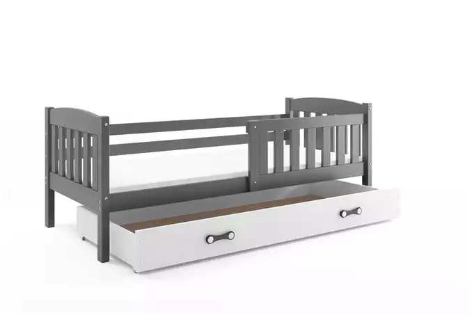 KUBUŚ viengulė jaunimo lova 90×190 su čiužiniu ir stalčiumi, grafito spalvos/balta