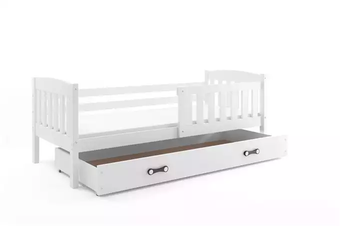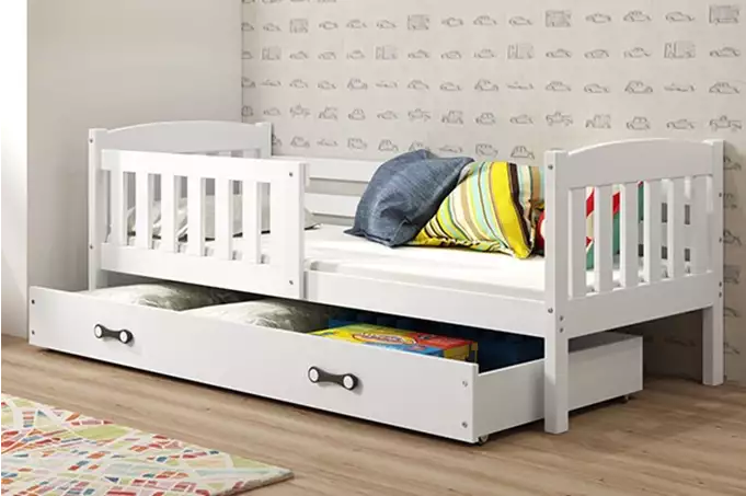 KUBUŚ viengulė jaunimo lova 90×200 su stalčiumi, balta