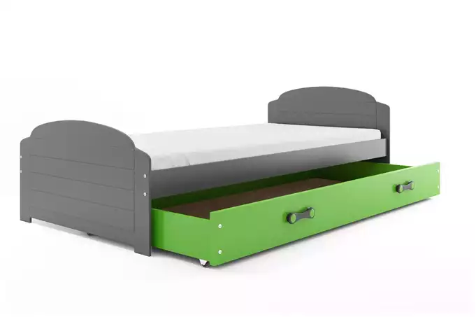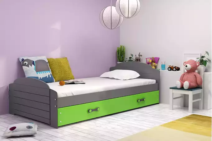 LILI viengulė jaunimo lova 90×200 su stalčiumi, grafito spalvos/žalia