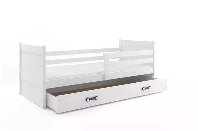 RICO viengulė jaunimo lova 80×190 su čiužiniu ir stalčiumi, balta