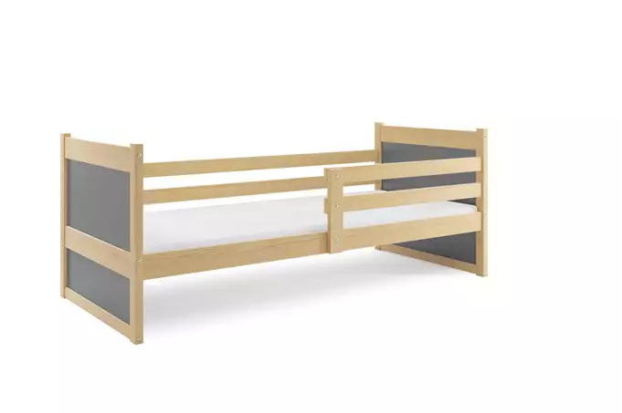Bed frame – made of pine wood, painted with a water-based varnish. Assembly accessories – quick and easy assembly. MDF board – painted with a water-based varnish. Mattress – 7 cm thick, with a removable cover, air-conditioning fiber, and polyurethane foam. Cover – quilted hypoallergenic polyester fabric, with a zipper. Frame – we are the only company offering a frame made of spring slats, made of birch wood, mounted with a PVC bracket on a metal strip, and a click-clack system (quick assembly). Load capacity – 100 kg. Curve – R2 radius. Certified bed – quality and safety in accordance with TUV standards.