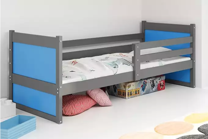 RICO viengulė jaunimo lova 90×200 su čiužiniu, grafito/mėlyna