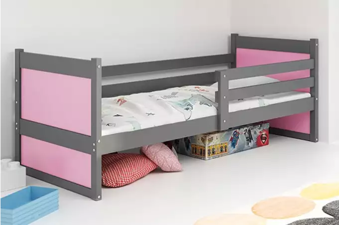 RICO viengulė jaunimo lova 90×200 su čiužiniu, grafito spalvos/rožinė