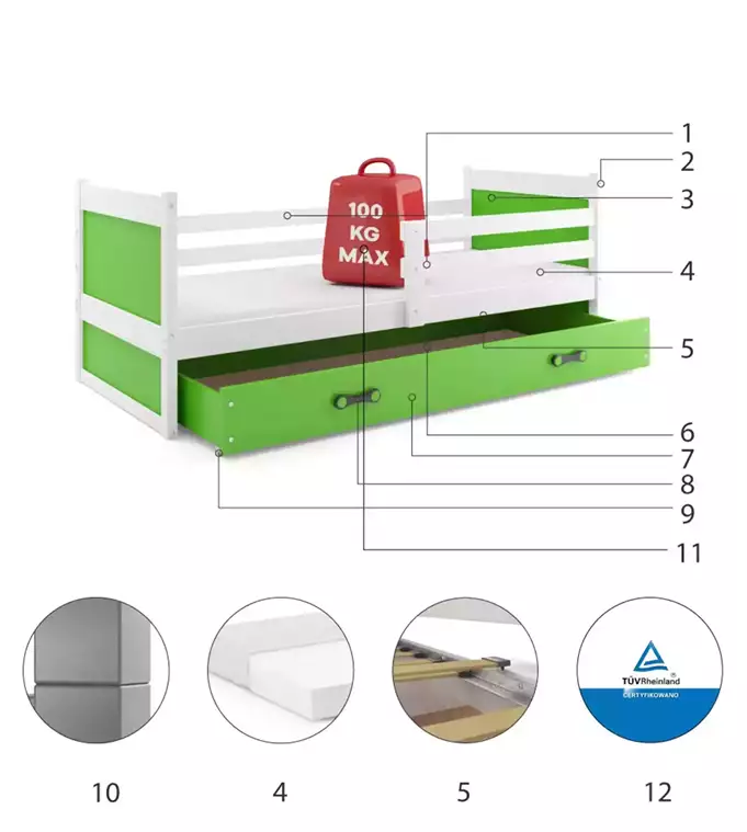Sertifikuota lova – kokybė ir saugumas atitinka TUV standartus.